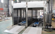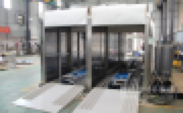 2、外形尺寸:寬4700*高2850*深13900mm,箱體內(nèi)可同時(shí)平排進(jìn)三臺(tái)推車,烘烤時(shí)間可獨(dú)立設(shè)置(見附圖);上料區(qū)長1500mm,設(shè)有上料斜坡,便于推車進(jìn)入緩沖區(qū);兩端緩沖區(qū)各長1700mm,各設(shè)有升降平臺(tái),便于推車進(jìn)出烘烤,爐蓋上加裝0.75KW高溫抽風(fēng)風(fēng)機(jī);烘干區(qū)長7620mm,烘干區(qū)前后裝有隔熱卷閘門,加裝感應(yīng)器,底部設(shè)有傳送鏈條;下料區(qū)長1500mm, 加裝斜坡 ,以便推車出料。