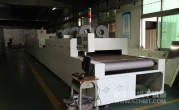 2、外形尺寸(約):總長24500mm*總高1740mm*總寬1890mm,地面到網(wǎng)帶的高度為950-1050mm,爐體內(nèi)進(jìn)料高度為150mm;烘干部分總長14000mm,分7段獨(dú)立控溫(每段4個測溫?zé)犭娕迹慷?000mm。冷卻段長4000mm,UV區(qū)2000mm,前后緩沖區(qū)各長500mm,進(jìn)料部分長2000mm,出料部分長1500mm, 爐體前后大梁上方裝有急停開關(guān),共4個。